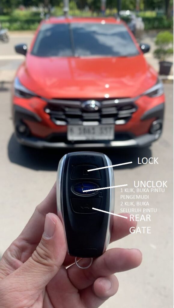 Secara singkat untuk mengunci mobil Subaru dengan kunci adalah dengan cara menekan tombol yang paling atas dari kunci mobil, untuk membuka kunci dapat dengan menekan tombol Tengah / logo Subaru agar pintu pengemudi terbuka, untuk membuka seluruh pintu termasuk bagasi kita dapat menekan tombol logo Subaru 2 – 3 kali, dan terakhir untuk membuka rear door / pintu belakang dapat dengan menekan tombol yang paling bawah.