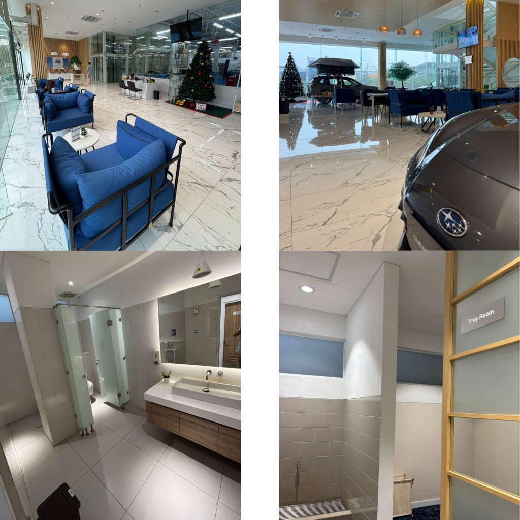 Berada di jantung pusat kota Jakarta Barat, Plaza Subaru Kebon Jeruk memiliki konsep 3S (Sales, Service, dan Spare Parts). Dengan desain ruangan yang bernuansakan putih dengan aksen kayu memberikan nuansa yang khas negeri pembuatnya yaitu Jepang. Ketika servis customer subaru dapat menunggu dengan nyaman di ruang tunggu servis berada di lantai satu dan lantai dua,dimanjakan dengan display – display unit subaru yang sangat menarik akan membuat kesan yang nyaman ketika customer melakukan servis. juga terdapat ruang salat untuk customer yang beragama islam yang hendak menunaikan ibadah salat.